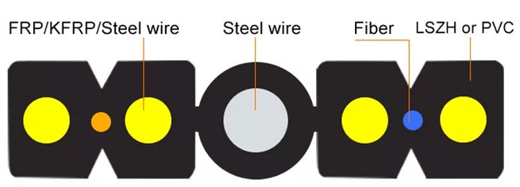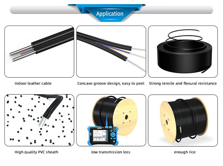 Our Fiber Cable Optic uses optical pulses generated by small lasers or light-emitting diodes to transmit communication signals, providing a way for light transmission. Its optical fiber unit is located in the center, two parallel strength members are placed on both sides, and steel wire is also used as additional strength member, and then the cable is completed with black HDPE sheath. In addition, it can be directly connected to the home for use, and its bandwidth, wavelength and transmission technology type are not limited.